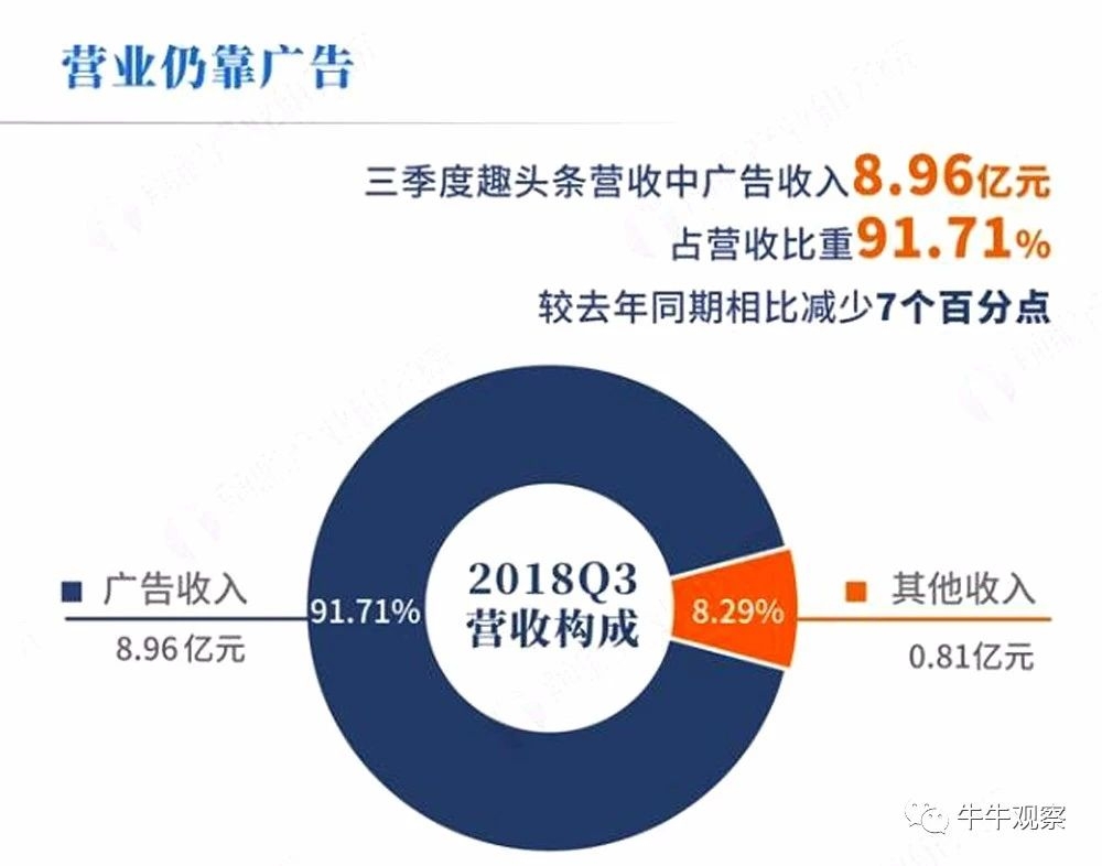 而从收入构成来看,广告收入依然是趣头条的主要支柱。根据趣头条公布的财报显示,其三季度广告收入将达到8.965亿元(约合1.305亿美元),较2017年同期的1.567亿元增长了472.3%。很明显,趣头条广告收入增速低于成本增速。这不是一个好兆头。如果趣头条不能将成本节约下来,或者无法开辟新的开源渠道,那么,趣头条的财报在短期内,要想实现盈利也并非那么容易。