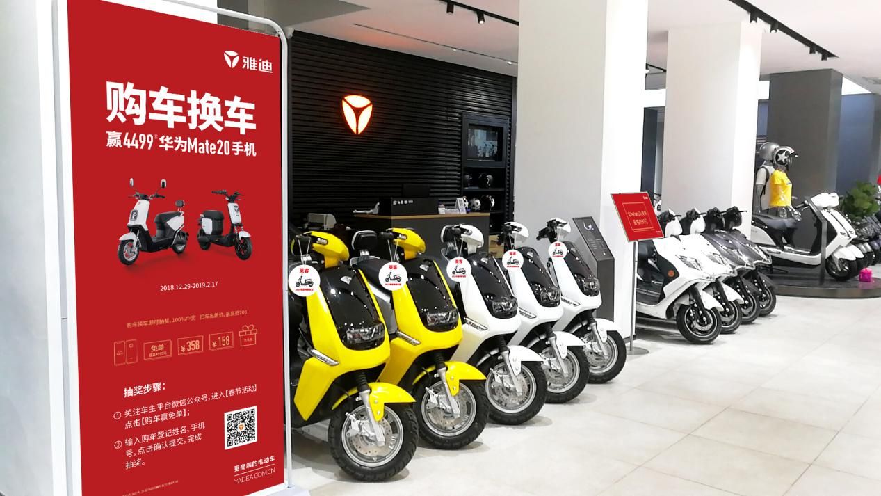 来雅迪电动车门店 赢华为新旗舰Mate20手机