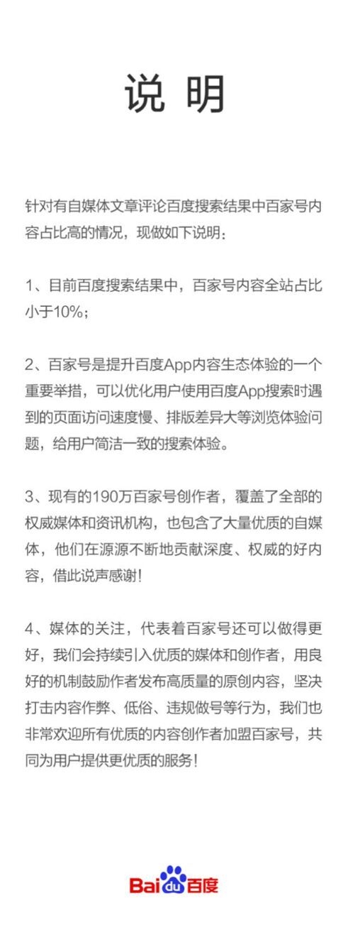百度官方回应百家号一事:涵盖190万创作者 覆盖全部权威媒体