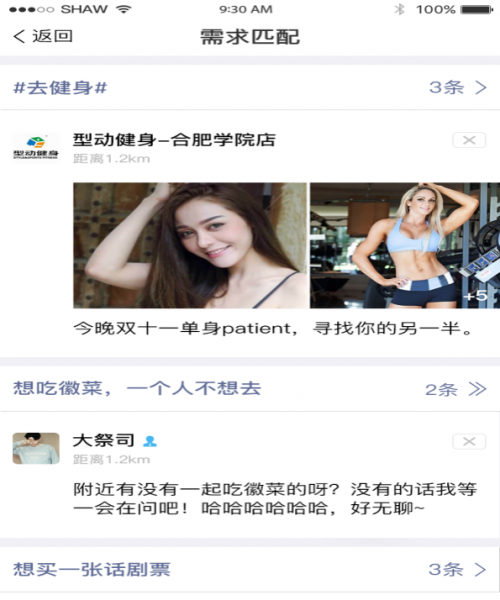 打个比方,小王是某保险公司的销售经理,他身份有几个标签,他是一个孩子的爸爸,他最近在换房子,他最近做副业卖茶叶等等,那么他可以发布他拥有价格实惠的保险方案,他想要一个男孩子的九成新的推车,他想换一套大一点的房子,他卖精品茶叶。这些都是在小王一个人的标签上面,当小王使用贝圈的时候 可以随时随地把这些信息向他为中心的1公里的范围进行传播,如果有和他供需相似的则初步匹配上,比如小王去游乐场,有个游客想要买个旅游意外险的时候,可以匹配上,他们双方进行初步的沟通,合适再继续深入,如果小王来到一个他理想的小区附近,有个业主正在卖房子,他们双方也可以匹配上,进行初步的沟通。