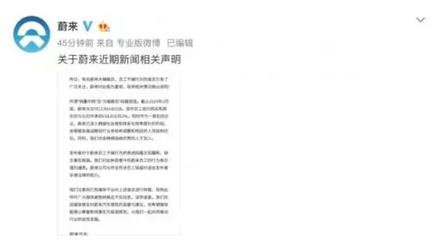 昨日,有关蔚来大幅裁员、员工不端行为的谣言引发了广泛关注,蔚来对此极为重视,现将相关情况做出说明: