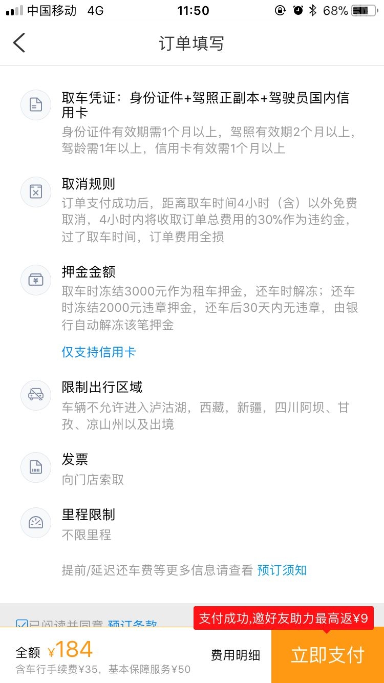 取车的同时还需要交付8000的押金,包括违章押金和车辆押金,当然一嗨租车还推出了两种免交押金的方法,一是芝麻信用650分且通过综合评估的,二是绑定信用卡后可以免支付车辆押金,这是对于芝麻信用高的小伙伴的一大福音,除此之外,车辆押金在还车的时候确保车没问题就可退还,违章押金则需要30—40天才能退还。