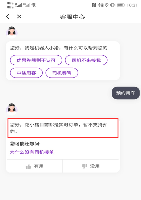 此外,小编希望花小猪打车可以增设一个预约用车的功能,这样就可以解决出门打不到车需长时间等待的尴尬。
