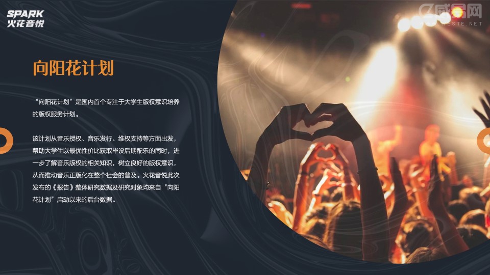 今年4月,火花音悦(SparkMusic)启动“向阳花计划”,这是国内首个专注于大学生版权意识培养的版权服务计划。该计划从音乐授权、音乐发行、维权支持等方面出发,帮助大学生以最优性价比获取毕设后期配乐的同时,进一步了解音乐版权的相关知识,树立良好的版权意识,从而推动音乐正版化在整个社会的普及。火花音悦此次发布的《报告》整体研究数据及研究对象均来自“向阳花计划”启动以来的后台数据。