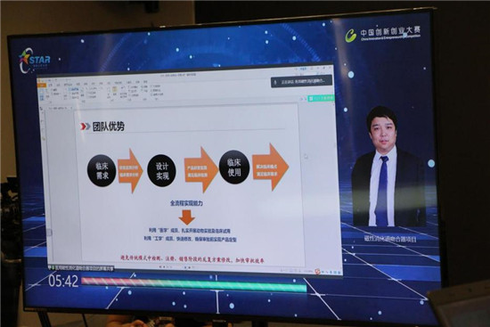 虽然云端开赛,评审现场仍可以感受到紧张气氛。尽管参赛选手们都经历了初赛,但在决赛赛场依旧十分谨慎。在线上路演的15分钟内,参赛选手通过8分钟的PPT展示和7分钟的快问快答,参赛企业代表围绕技术创新、竞争对手、商业模式、财务预测等展开演讲。答辩环节,评委们纷纷对创业项目的关键创新创意点、核心竞争力、市场前景等进行了详细询问,选手们对答如流,表现十分出彩。