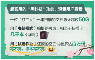 此外,AI扫描技术还促成了可精准矫正曲面的“书籍模式”,智能识别、擦除手写字迹的“试卷作业”模式等文档处理“黑科技”的实现。数据显示,2023年,扫描全能王用户扫描的书籍页数高达上千本《辞海》;擦除手写字迹、还原的空白试卷数量超过百万份。