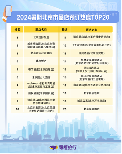 同程旅行数据显示,2024年暑期北京市内酒店的核心客源地主要来源于华北、华东和华南地区,其中,江苏、广东、山东、河北、上海排在前列。预订热度较高的酒店则主要集中在天安门、国贸、王府井等游客接待量较大的区域,首都机场、北京西站、北京南站周边预订热度也较高。