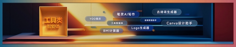 我要讲的第三类智能体是工具类。工具类智能体其实是个热门赛道。笔灵AI写作、canva设计助手、logo生成器等等,这些都是典型的工具智能体。