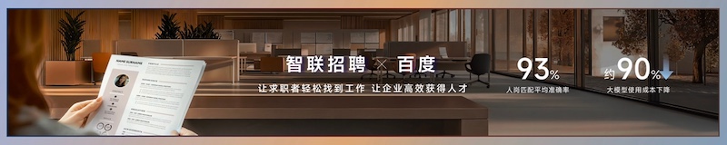 百度和智联招聘合作,利用大模型重构了这个核心环节。通过自然语言对话,结合岗位的描述,迅速地为求职者和岗位画出精准的匹配画像,并且自动回答有关工作时长、薪资福利、工作地点这些求职者关心的问题,甚至进一步帮助安排面试。既为求职者推荐了合适的职位,也为用人单位精准筛选出所需的人才,显著提高了用人单位的招聘效率和质量。目前,百度和智联招聘合作,已经成功沉淀出一系列提示词模板,并在数万条实际数据中得到了验证,人岗匹配的平均准确率高达93%,而大模型使用的成本却下降了约90%,为招聘行业带来了全新变革,。