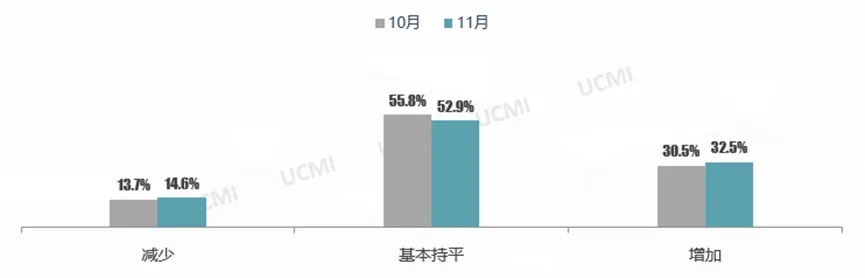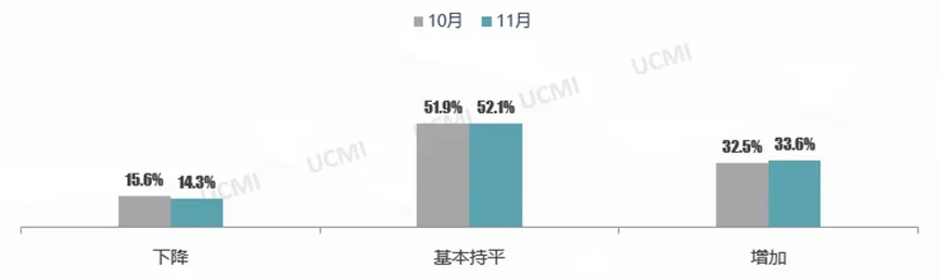 根据调查,11月二手车市场需求逐步增多,表示市场需求“增加” 的二手车经理人比例高于上月。11月,随着销售旺季的到来,市场需求增长,同时汽车置换更新支持政策进一步落地实施,购车需求也得到进一步释放。
