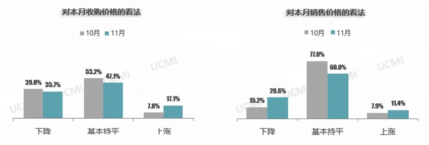 调查显示, 11月二手车收购价格“上涨”以及销售价格表示“下降”的二手车经理人比例都有较大幅度的提升。11月,随着市场优质车源的增多,收购价格提升。而销售价格由于新车价格持续下滑的影响而略有下降。