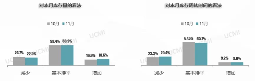 调查显示,11月经销商库存量基本持平,表示库存量“增加”与“减少”的二手车经理人比例同上月相当。表示库存周转时间“减少”的比例提升,库存周转时间下降。随着市场优质车源的增加,经销商加大车辆的收购为年底旺季的到来做好充足的准备。同时市场活跃度提升,经销商的库存周转时间也相应减少。