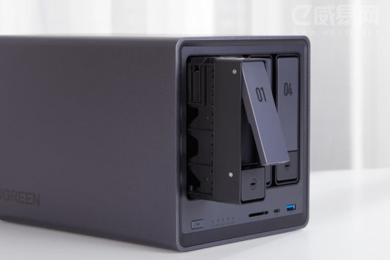 同时,它还配备四个机械硬盘盘位以及两个 M.2 固态硬盘拓展接口,最大存储容量可达 112TB,能够根据不同工作需求灵活扩展,无论是处理大量视频、图片还是文档等数据,都能轻松应对,满足用户对大容量存储的需求。