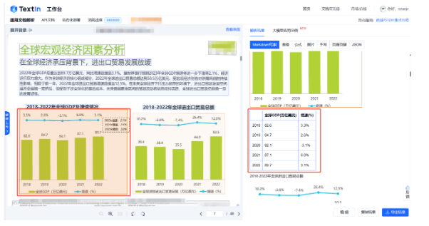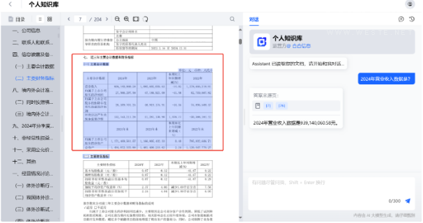 为了让行业“安心”使用大模型,知识库产品推出溯源功能,通过在“投喂”给知识库的Markdown及JSON文件中标记页码、坐标等空间位置信息,实现对句子、段落的精确溯源,为用户提供了一个快速检验的路径。以财务分析为例,大模型在多份高达上千页的财报文件中找到收入、利润等关键数据后,券商分析师可利用溯源功能定位原表格,对信息进行复核,防止错误、遗漏。