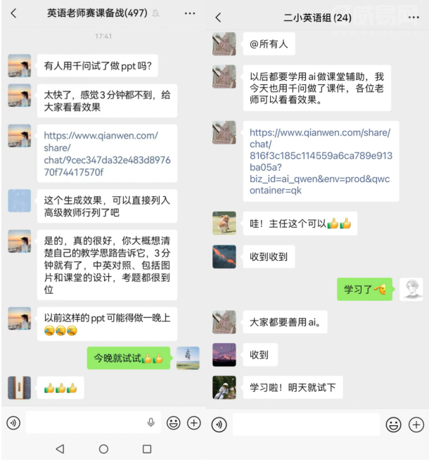 这一功能意外受到英语老师欢迎,不少英语老师在社交平台和教师群里自发“种草”,安利用千问把想好的教学设计“变”成一份完整教学PPT。