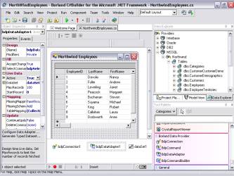 In addition to supporting the SQL Server, Oracle, OleDb, and ODBC data providers included in the .NET Framework that VS .NET supports, C#Builder also includes the Borland Data Provider (BDP). BDP is an extensible data provider that lets you connect to multiple databases with the same code. Current databases supported include Borland InterBase, IBM DB2, Microsoft SQL Server, and Oracle 9i. At press time, Borland is adding even more support for new data providers and, by every indication I've seen, it is committed to continue doing so for the foreseeable future.