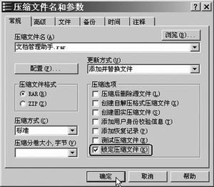 此命令只支持RAR压缩文件,同时,在压缩文件时,设置窗口中也有一个“锁定压缩文件”复选框●,一旦选中,生成后的压缩包将无法再修改,它对于备份重要数据很有用。