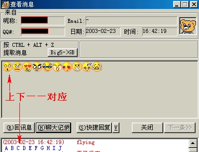 解释一下:QQ的表情符号每一行有10个,它们和下面的字符是一一对应的(图5):
