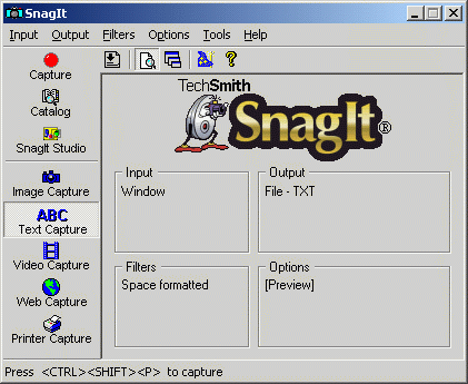 SnagIt不仅可以抓取图形,它还能直接获取其中的文字。启动SnagIt后,选择其中的“Text Capture”模式(如图3),然后点击“Capture”按钮。接着你只需要选择抓取的范围,SnagIt就可以自动获取所选范围中的文字。需要注意的是,此时并不是以图像的形式存在,而是以文本的方式存在,这样你就可以将抓取的文字保存为文本。