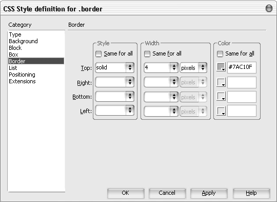点击OK后,会弹出具体的效果设置,打开其中的border标签,进行如图3的设置。