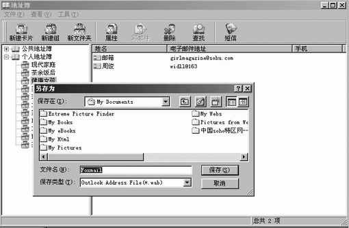 豆仔提示:Outlook地址簿文件在Windows9X操作系统中位于“\WINDOWS\Application Data\Microsoft\Address Book”目录下,而在WindowsXP操作系统中的地址簿则位于“\Documents and Settings\计算机管理员用户名\Application Data\Microsoft\Address Book”目录下。