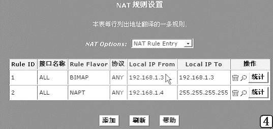 Bimap规则:Bimap规则可以用来提供外网访问局域网设备,采用此方式将局网中的某台PC(IP)完全透明对应到公网的IP,这样许多复杂的应用如MSN话音,网络游戏可以在这台PC正常运行。