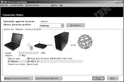而一些品牌计算机所配备的专用管理软件往往会更加强大,例如IBM ThinkPad笔记本电脑,使用IBM Access Connection软件(如图5)与无线网卡搭配,无线信号强弱的检测值可精确到1%。
