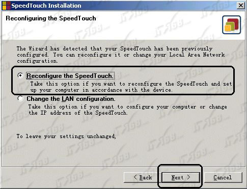 首先,运行阿尔卡特511的配置程序,在打开的界面中选择“Next”,在出现“版权声明”时选择“YES”,再“Next”。然后,在出现的选择界面中选择“Reconfigure the Speedtohch”(重新配置工作模式,图3),再“Next”。在新出现的界面中选择“china expert→routed pppoe ”,“Next”。再一次“Next下一步”之后,阿尔卡特511会向其固件更新数据,等待数分钟之后重新启动阿尔卡特511,你就可接上HUB无需主机拨号多机上网冲浪了。