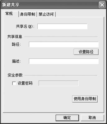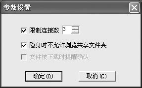 要把自己电脑上的文件远程传输给其他用户,首先需把要传输的文件共享。启动QQ2003,选择“QQ菜单→工具→共享文件”,在弹出的“共享文件”对话框上,在“我的共享”选项卡上,点击“新建共享”图标,弹出“新建共享”对话框,如图1所示,在“常规”选项卡上,在“路径”中输入或点击“设置路径”,选择被共享的文件所在的文件夹,在“共享名”中给该文件夹起一个名字,“描述”中输入对该文件夹的简要说明。选择“设置密码”复选框,可以设置访问该共享文件夹的密码。你也可以在“身份限制”或“禁止访问”选项卡上设置访问该共享文件夹的用户身份或添加访问该共享文件夹的成员。以上设置完成后,点击“确定”关闭“新建共享”对话框,该文件夹就以在图1上设置的共享名显示在“我的共享”选项卡上了。在“我的共享”选项卡上,点击“参数设置”图标,弹出“参数设置”对话框,如图2所示,你可以在该对话框上设置同时连接的最大连接数以限制他人下载你的文件时所占用的带宽。