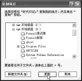 方法1在Windows 2000/XP的资源管理器中,单击“编辑”菜单可以看到有“复制到文件夹”和“移动到文件夹”两个命令。为了方便使用,我们可以将它们添加到工具栏上:右击工具栏,选择“自定义”,选择“移至”和“复制到”按钮后点“添加”。在窗口中选择文件,然后点“复制到”按钮,在出现的新窗口中选择目标文件夹,这样不用改变当前所处的文件夹就可以直接进行复制或移动文件了,如图1所示。