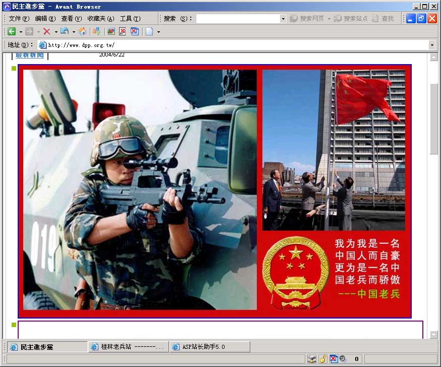 记者还找到了一家叫“中国黑客同盟”的网站,与中国红客风格低调的风格相反,进入中国黑客同盟主界面,右边,“提高网络安全捍卫国家尊严,提倡免费资源推动民间交流”两行白色大字分外醒目,左边,“黑色帝国”的绿色符号串不断变换,而中间,那面鲜红跳跃的五星红旗撩动得人心激荡,热血沸腾。这样的黑客组织团结了一批爱国、而又初通网络技术的少年。记者随即注册登陆到该同盟的聊天室,键入“台湾”关键字,立时蹦出来30多条相关信息。有一位署名“东江瘦鱼”的管理员截取了一段中国黑客在日本某网站上粘贴的网页,抗议日本暗地支持“台独”的行为。另外有个跟帖写道:我有朋友已经进入台湾地区、日本的70多个网站,大家快顶。记者注意到他们的注册时间,最早的是在今年3月份,看来这个网站才成立不久。再搜索,类似这样的新鲜网站,不胜枚举。