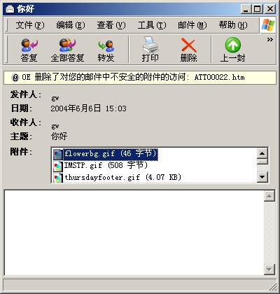 近日笔者在使用Outlook Express接收带有附件的邮件时,总是会出现黄色背景提示“OE删除了对您的邮件中不安全的附件的访问”(如图) ,从而无法顺利地下载附件。后来笔者终于把问题解决,具体方法如下: