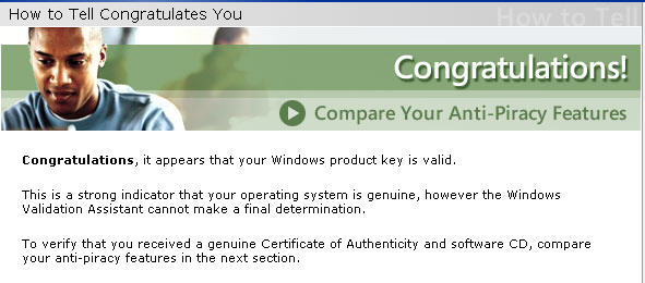 下面的是微软的测试你的版本是否通过验证的链接: