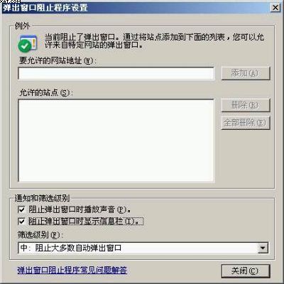 在XPSP2之前,各种广告弹出窗口屏蔽插件层出不穷,连微软都在自己的MSN Toolbar里面加入了这个功能。现在,有了XPSP2,这些插件就可以丢弃了,因为微软在IE6SP2里面也加入了屏蔽广告弹出窗口功能(图3)。