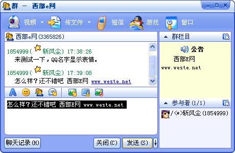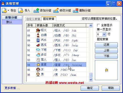 比如我用的是序号为94的星星,我就将我的名字修改为“/<*>斩风尘”或者“/xixing斩风尘”,这样在对话的时候就会在QQ名字里显示表情了。表情的位置前后都可以放,就看你的创意了~~(西部E网 www.weste.net)