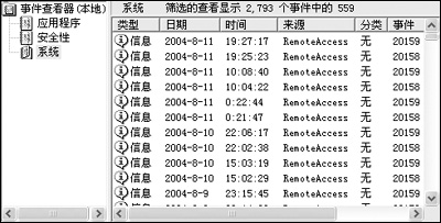 在控制面板中,打开“管理工具”窗口,用鼠标双击“事件查看器”,在出现的“事件查看器”窗口的左边列表中,用鼠标右击“系统”项,选择“属性”命令,在弹出的“系统属性”窗口中选择“筛选器”选项卡,“事件来源”选择“RemoteAccess”,“类别”选择“全部”(图1)