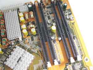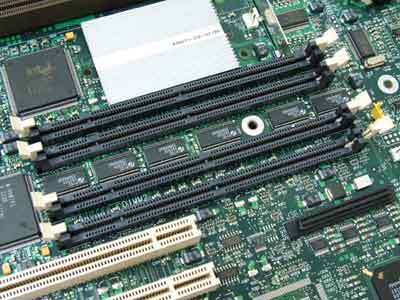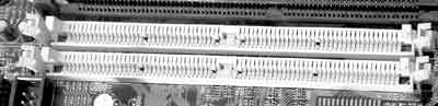 RDRAM内存插槽,请注意,必须将每个插槽插上内存,主板才能正常工作