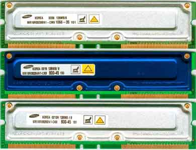 RDRAM(存储器总线式动态随机存储器)是Rambus公司开发的具有系统带宽、芯片到芯片接口设计的新型DRAM,它能在很高的频率范围下通过一个简单的总线传输数据,同时使用低电压信号,在高速同步时钟脉冲的两边沿传输数据。Intel基于自己的利益,一直试图推广这种内存,不过由于价格过于高昂,这种内存的并未得到普及。