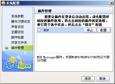 步骤3:勾选“MSN”前的复选框,单击“启动”按钮,然后点击“保存”按钮,这样当下次登录网易泡泡时,该MSN插件也会自动启动。